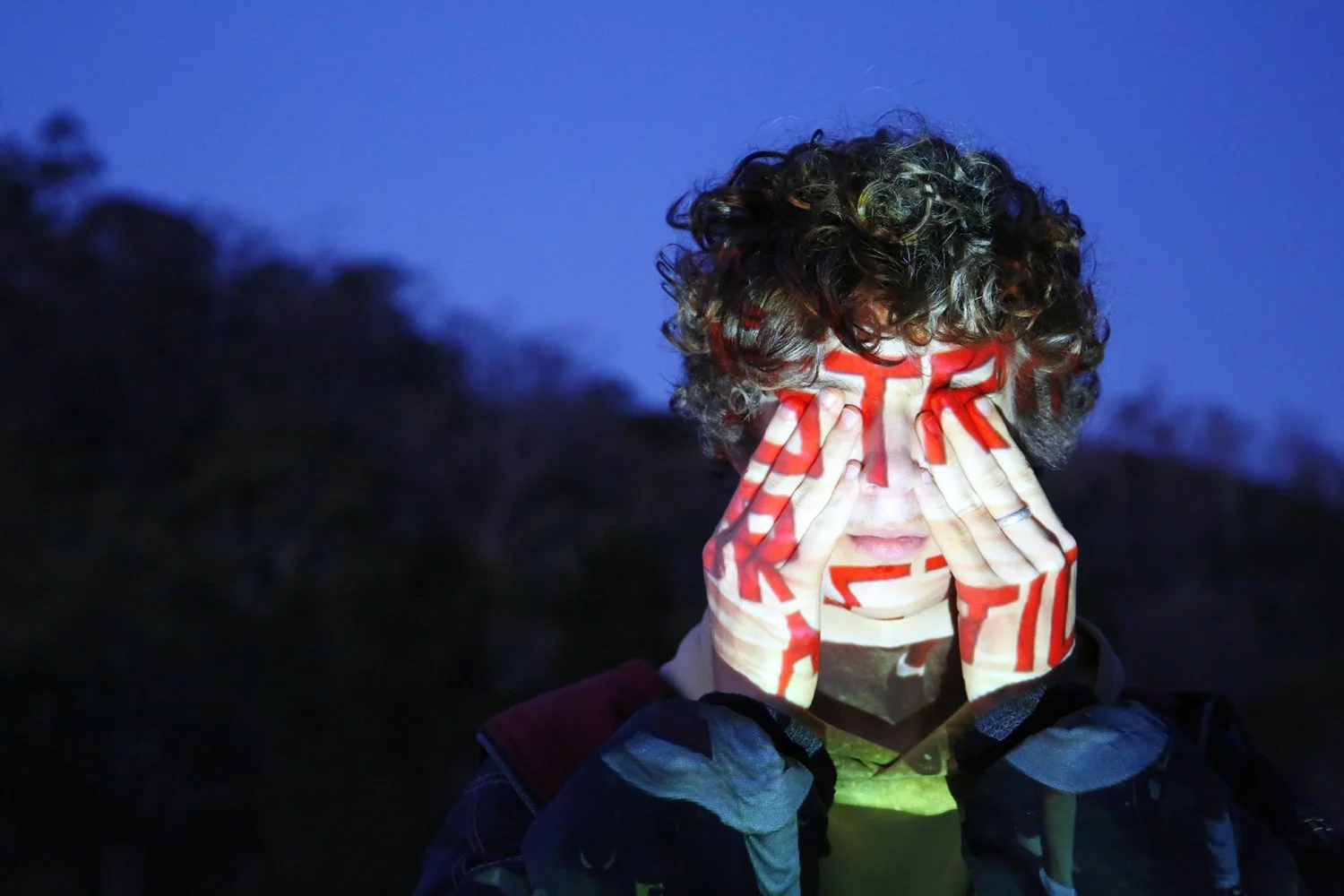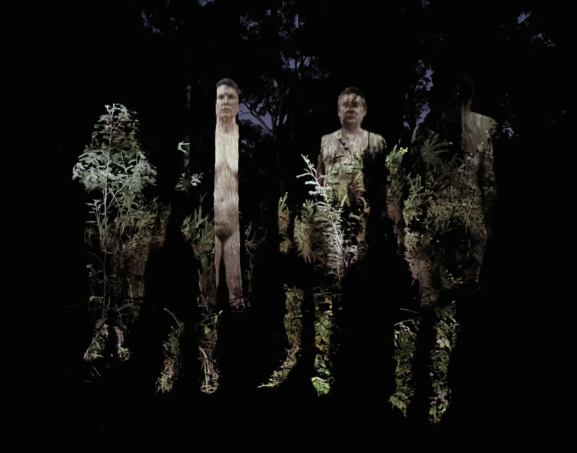 The final body of work plays with projections, this time in a utopian dream of people returning to the bush and finding a balance with nature.
