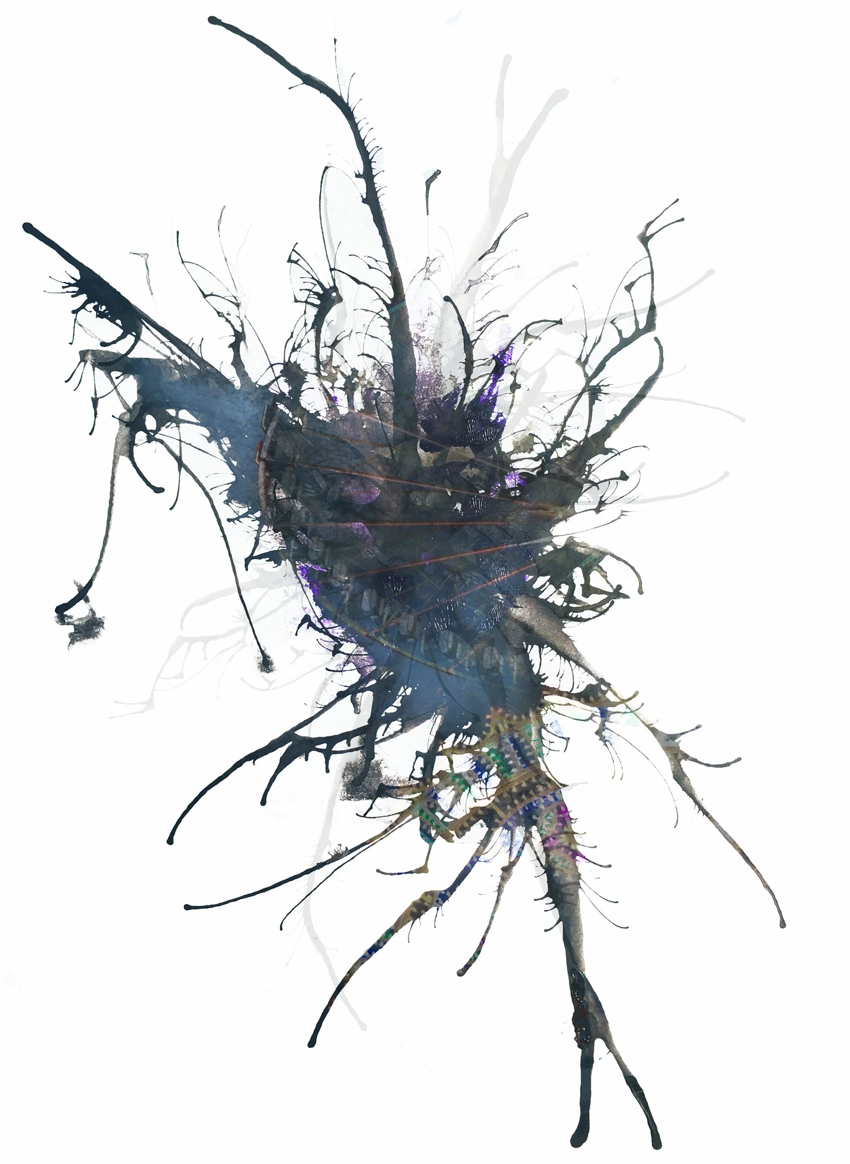 I was thrilled to be invited to exhibit at Artifact, a little gallery on Lower East Side, New York City. I decided to create work on my journey through Thailand and UK to include with my InkBlot sculptures. These photo prints incorporated images of landscapes coupled with ink splatter paintings, sometimes layered on top of the landscape and other times they revealed the landscape, creating tensioned marks on paper. ‘Tempest’ was a response to the climate crisis and questioned the invisible strain that environmental challenges like fire, drought and floods have upon our collective psyche.